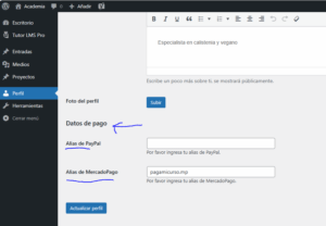 - Ingresá tu alias de PayPal o MercadoPago, según prefieras recibir tus pagos.
